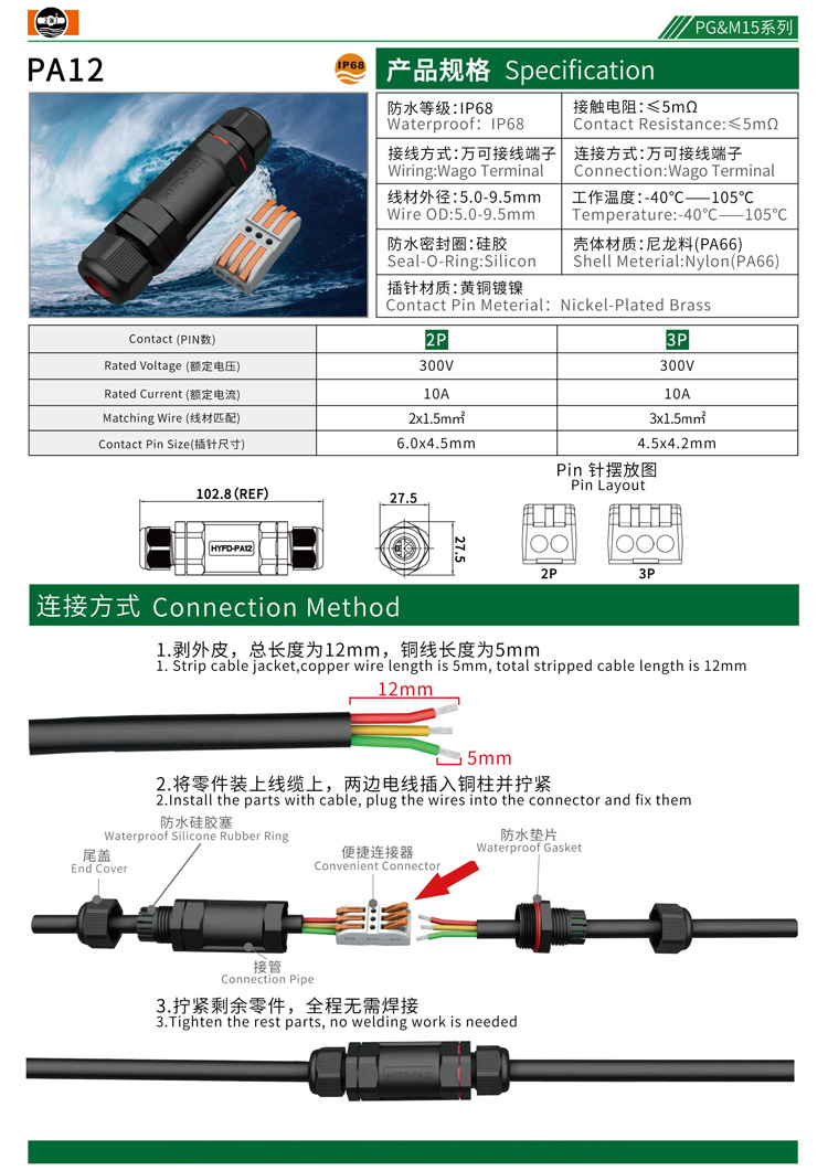 以下は、標準パラメータと仕様の詳細な概要です。ワゴコネクトまたはsによって供給されました深セン 2 IN 1 テクノロジー株式会社